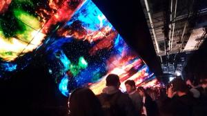 LG전자의 CES 전시장엔 '물결' 치는 듯한 디스플레이가 천장을 수놓고 있다. OLED 사이니지 200여장을 이어 붙인 '새로운 물결'(New Wave)은 압도적인 크기와 화질로 전 세계의 눈을 사로잡았다. LG전자는 '롤업' 방식뿐만 아니라 위에서 아래로 펼쳐지는 '롤다운' 방식의 롤러블 TV도 선보였다.