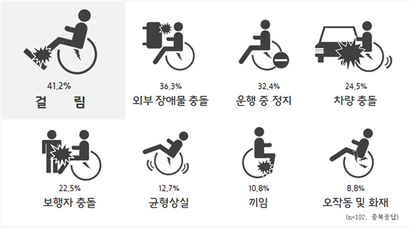 전동휠체어와 전동스쿠터(이하 전동보장구) 이용자의 안전사고 우려가 높은 것으로 나타났다. 차도 이용과 안전규정 미흡이 주된 이유였다.