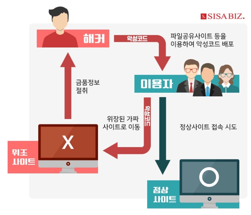 파밍은 사용자 PC를 악성코드로 감염시켜 금융정보를 빼내는 수법이다. 개인 PC를 악성코드에 감염시켜 공인인증서를 유출한다. 감염된 PC에서는 정상 금융사 홈페이지에 접속해도 가짜 사이트로 유도된다. 이를 통해 개인 금융 정보를 빼간다. 계좌의 돈이 범행 계좌로 불법 이체된다.