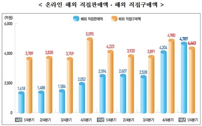 온라인 해외 직접 판매액은 2014년 1분기 통계청 조사 이후 최대치를 기록했다.