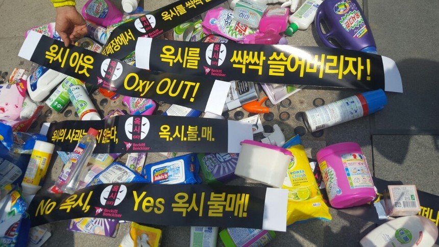 환경운동연합과 가피모는 옥시에 대해서도 "옥시는 독극물을 원료로 사용하면서 최소한의 안전성도 확인하지 않았다"며 "본사가 있는 유럽에서는 '바이오사이드 제품의 안전 확인 제조사 책임제도(BPR)' 때문에 도저히 있을 수 없는 일로, '한국이니까 괜찮다'는 인종주의적 판단과 부도덕한 이중기준의 적용 결과"라고 목소리를 높이고 한국 내 영업 중단을 요구했다.
