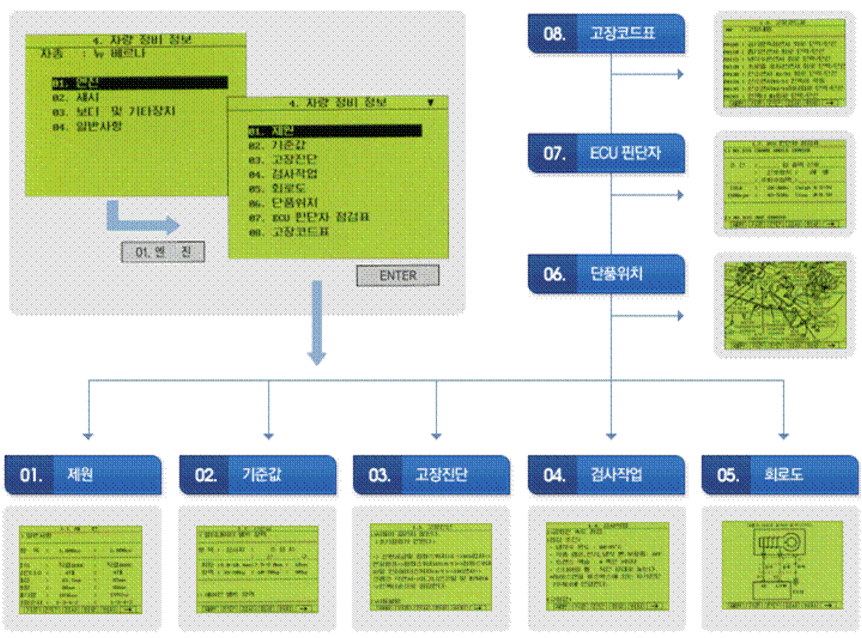 차량 내부 부품의 고장 여부를 한 눈에 알 수 있는 차량 정비용 진단기 하이스캔 프로 화면. / 사진 = 네스테크