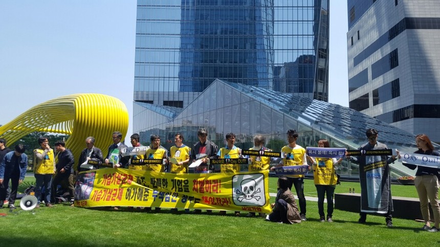 항의 방문단은 “영국 옥시 측은 주주들에게 유감의 뜻만 전했다”며 “책임을 인정하고 사과하는 모습은 없었다”고 비판했다.