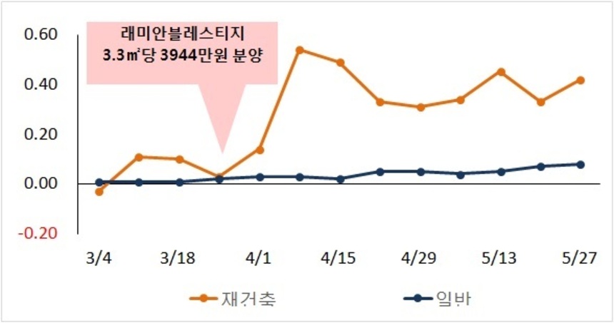 부동산114 관계자는 “강남권 재건축이 고분양가 논란에도 불구하고 실수요는 물론 투자수요까지 형성될 만큼 관심이 이어지고 있다”며 “당분간 이런 움짐익은 계속될 전망”이라고 말했다.