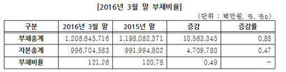 거래소 관계자는 "부채비율이 작년말 대비 소폭 증가했으나 재무안정성은 지속적으로 건전한 상태"라고 설명했다.