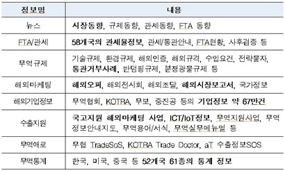 아울러 국내 최초의 무역 정보 통합 채널도 가동한다. 트레이드 내비를 많은 기업들이 활용할 수 있도록 수출 대표 포털(www.tradenavi.or.kr)로 집중 홍보하고 이용 환경을 개선할 방침이다.