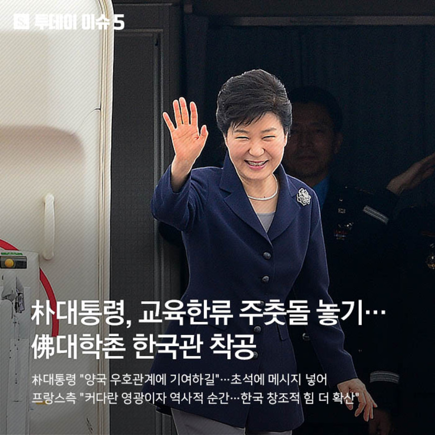 朴대통령, 교육한류 주춧돌 놓기… 佛대학촌 한국관 착공 저작권자 © 시사저널e 무단전재 및 재배포 금지 김재일 기자 kojell@sisabiz.com 페이스북 인스타그램 유튜브 이메일(으)로 기사보내기 다른 공유 찾기 기사스크랩하기 개의 댓글 회원로그인 댓글 내용입력 댓글 정렬 최신순 추천순 답글순 BEST댓글 BEST 댓글 답글과 추천수를 합산하여 자동으로 노출됩니다. 닫기 더보기 댓글삭제 삭제한 댓글은 다시 복구할 수 없습니다. 그래도 삭제하시겠습니까? 비밀번호 닫기 댓글수정 댓글 수정은 작성 후 1분내에만 가능합니다. 본문 / 400 비밀번호 닫기 내 댓글 모음 닫기