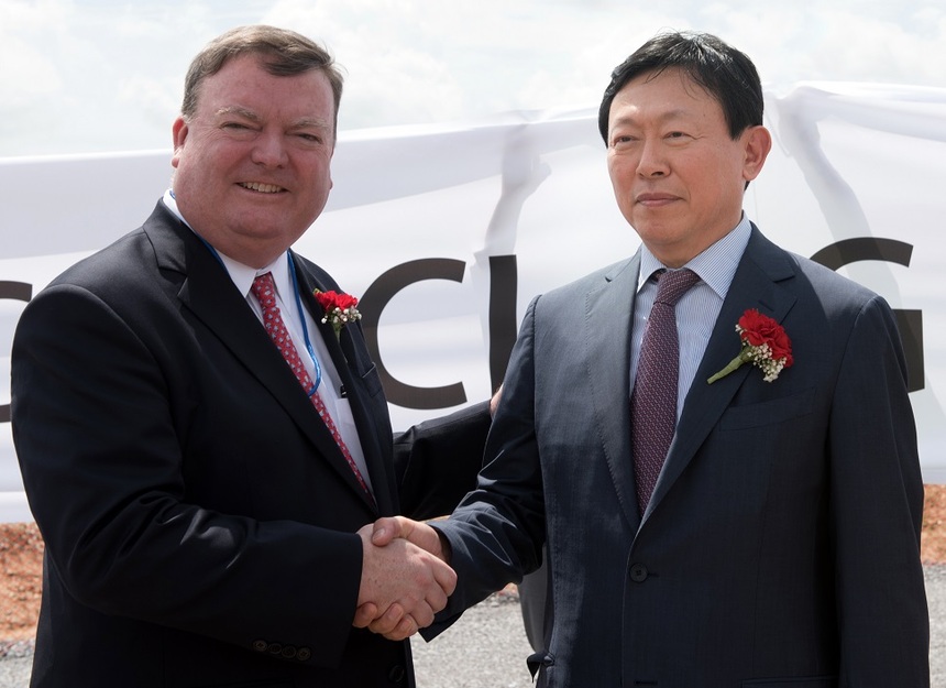 롯데그룹에 따르면 신 회장은 현지시간 14일 오전 미국 루이지애나주 레이크찰스에서 열린 액시올(Axiall)과의 에탄크래커 및 에틸렌글리콜 합작사업 기공식 직후 한국 특파원들과 만나 "국내 문제로 국민 여러분께 심려를 끼쳐 죄송하다"며 "책임을 느끼고 있으며 모든 회사는 검찰 수사에 적극 협조하도록 이야기 하고 있다"고 말했다.