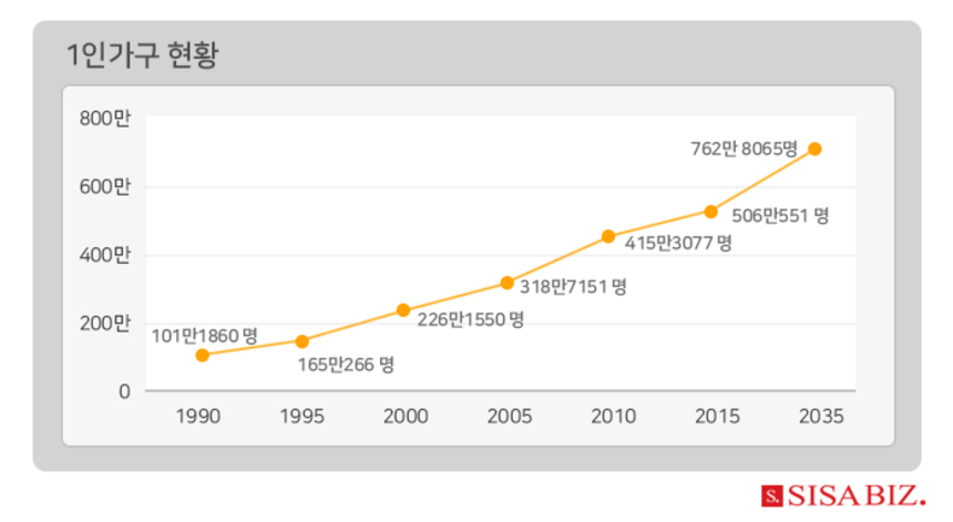 맞벌이 가구와 1인가구가 지속적으로 증가하고 있다. 국가통계포털에 따르면 지난해 유배우 가구 중 맞벌이 가구는 2011년보다 약 2700가구 증가했다. 장래인구추계 자료를 살펴보면, 1인가구는 조사가 시작된 1990년 101만1860가구에서 2035년 762만8065명까지 지속적으로 증가할 전망이다.