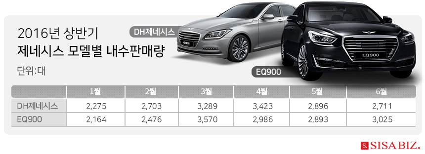 2016년 상반기 현대차는 고급차 시장에서 절반의 성공을 거뒀다. 정의선 부회장 주도로 야심차게 선보인 고급차 브랜드 제네시스가 기대치를 웃도는 성적을 냈다. 다만 현대차와 기아차의 수위 모델인 아슬란과 K9 부진이 뼈아팠다.