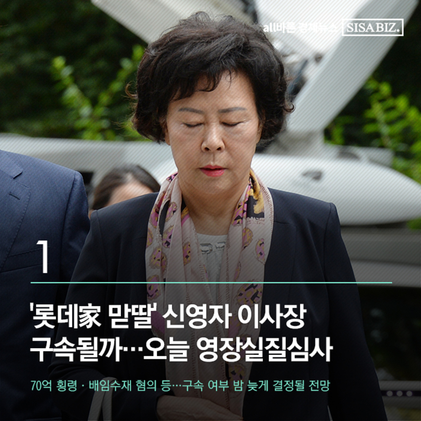 '롯데家 맏딸' 신영자 이사장 구속될까… 오늘 영장실질심사 저작권자 © 시사저널e 무단전재 및 재배포 금지 김재일 기자 kojell@sisabiz.com 페이스북 인스타그램 유튜브 이메일(으)로 기사보내기 다른 공유 찾기 기사스크랩하기 개의 댓글 회원로그인 댓글 내용입력 댓글 정렬 최신순 추천순 답글순 BEST댓글 BEST 댓글 답글과 추천수를 합산하여 자동으로 노출됩니다. 닫기 더보기 댓글삭제 삭제한 댓글은 다시 복구할 수 없습니다. 그래도 삭제하시겠습니까? 비밀번호 닫기 댓글수정 댓글 수정은 작성 후 1분내에만 가능합니다. 본문 / 400 비밀번호 닫기 내 댓글 모음 닫기