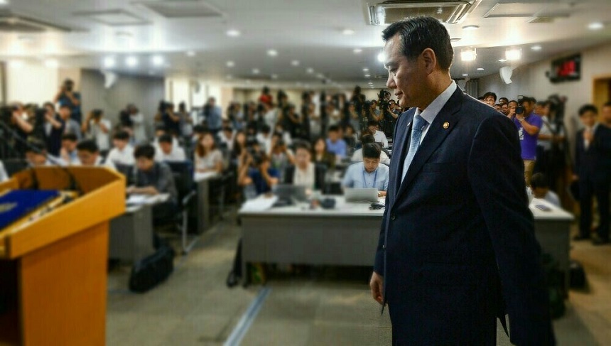 김현웅 법무부 장관이 지난해 8월 광복절 특사 발표를 위해 정부서울청사 브리핑룸에 들어서고 있다. / 사진=뉴스1