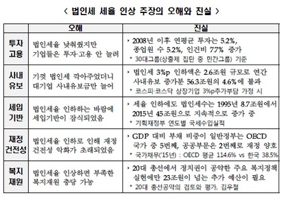 14일 전국경제인연합회는 법인세율 인상 주장은 오해가 있다며 조목조목 반박에 나섰다.