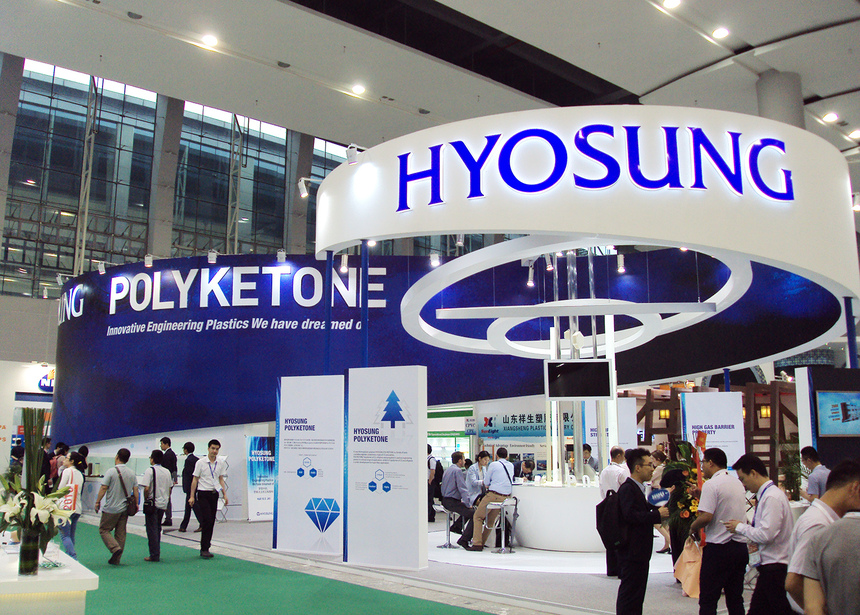 효성은 올해 초부터 폴리케톤 양산에 들어갔다. 4월에는 중국 상하이(上海)에서 개최된 플라스틱 산업 전시회인 2016 차이나플라스(Chinaplas)에 참가해 제품 홍보에 적극 나섰다. 효성은 2021년까지 1조원을 투자해 울산에 연산 30만톤 규모 생산 공장과 연구개발센터를 추가 설립할 예정이다.