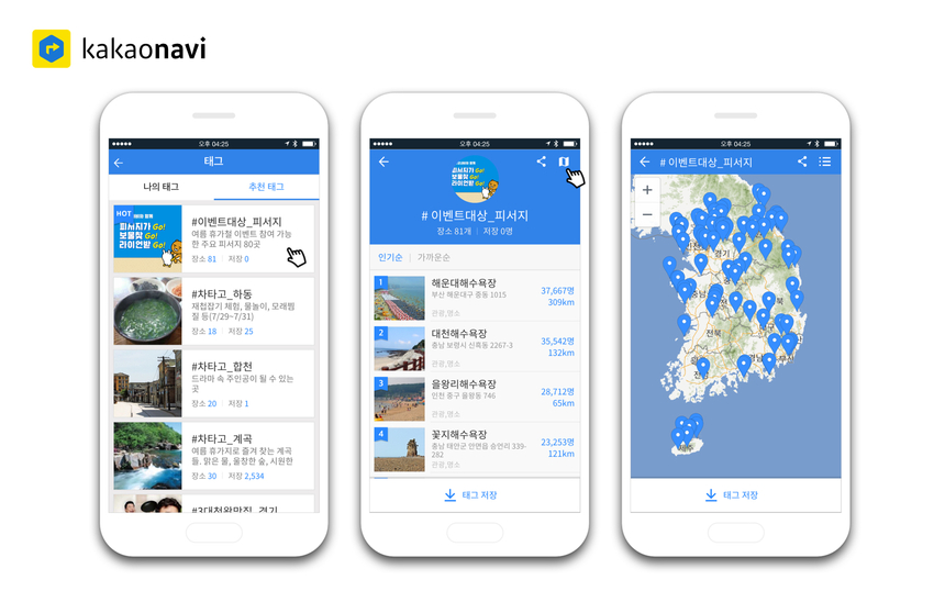 카카오내비는 이용자가 국내 인기 피서지 80곳을 방문하면 선물을 받을 수 있는 이벤트를 진행한다. 해운대 해수욕장, 용추계곡, 안면도 자연휴양림 등 카카오내비가 선정한 80개 장소를 카카오내비로 길안내 받은 후 ‘도착 완료’ 안내 화면만 확인하면 자동 참여가능하다. 행사는 7일까지 진행한다.