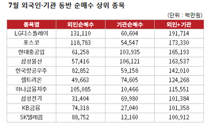 7월 기관 순매수에 이어 외국인이 매수 가세