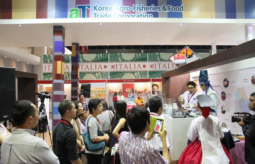 정부는 비슷한 기간(4일~7일)에 열린 태국 식품박람회에는 ‘꿀닭’, ‘서래갈매기’, ‘설빙’, ‘셀렉토커피’, ‘신마포갈매기’, ‘피자마루’ 등 외식브랜드 주축으로 한국관을 꾸렸다.