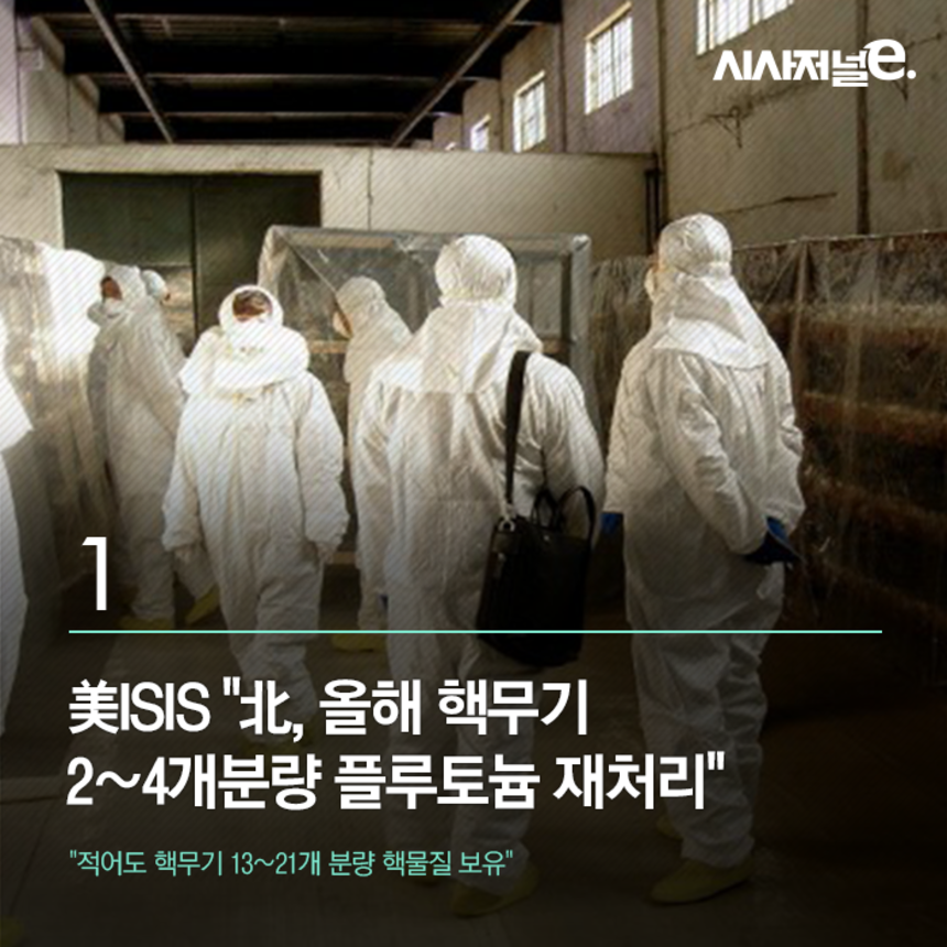 美ISIS "北, 올해 핵무기 2∼4개분량 플루토늄 재처리" 저작권자 © 시사저널e 무단전재 및 재배포 금지 김태길 기자 kira1203@sisajournal-e.com 페이스북 인스타그램 유튜브 이메일(으)로 기사보내기 다른 공유 찾기 기사스크랩하기