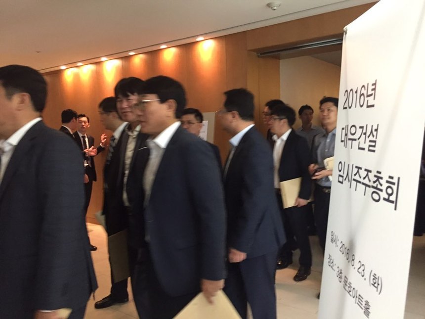 ‘사내이사와 사외이사 선임'을 안건으로 한 대우건설 임시주주총회가 23일 서울 종로구 대우건설 본사 3층 문호아트홀에서 열렸다. 오전 9시부터 시작한 주총은 비공개로 진행됐다. 이날 120여명의 대우건설 주주들이 참석했다.