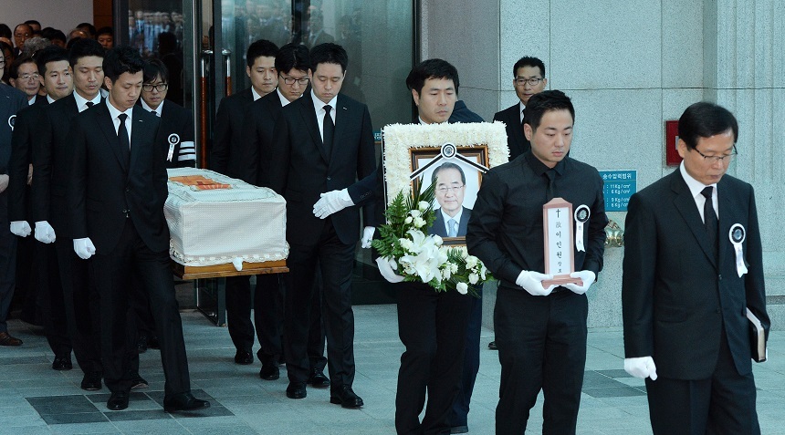 장례예식은 이 부회장 아들 정훈 씨를 비롯해 장례위원장을 맡은 소진세 롯데그룹 정책본부 대외협력단장(사장), 황각규 롯데그룹 정책본부 운영실장(사장) 등 300여 명이 참석한 가운데 엄수됐다.