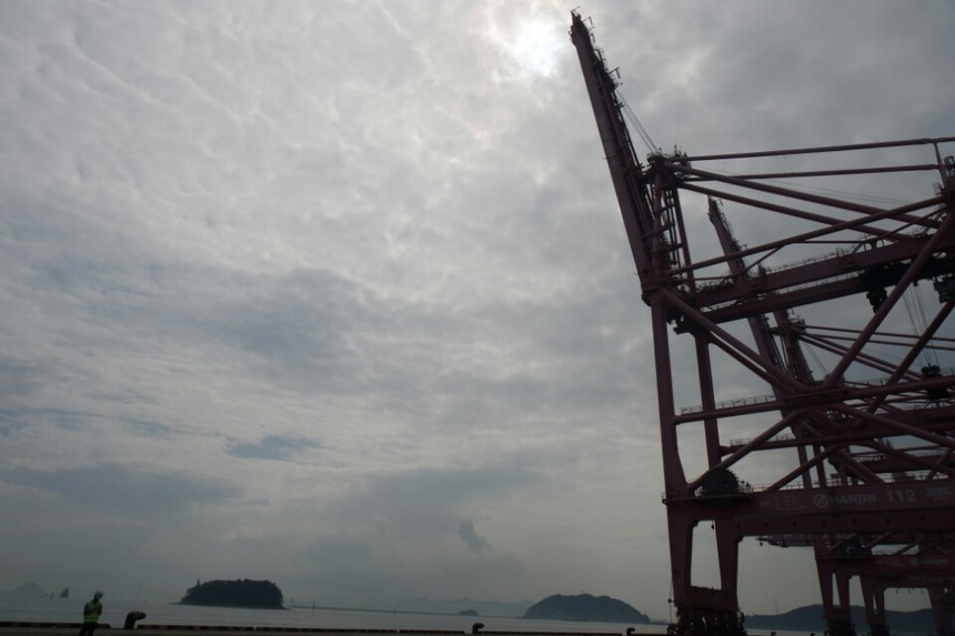 항만입구에서 한진해운 부두로 향했다. 부두 한가운데 짙은 분홍색 탠덤(Tandem) 방식(20피트 컨테이너 4대, 40피트 컨테이너 2대 동시 작업 방식) 안벽 크레인이 마치 조각상처럼 굳어 있었다. 바로 옆 노란색의 무인 자동화 야드크레인이 ‘지잉 지잉’ 소리를 내며 전후좌우로 연신 움직이는 것과는 대조됐다.