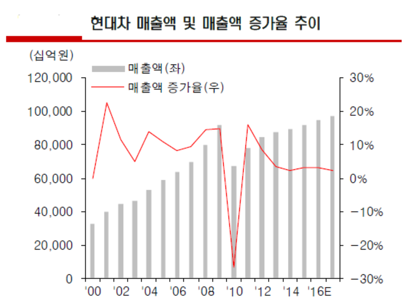 이 때문에 국내 완성차 업체 주가는 장기적으로 강세로 돌아서기 어렵다는 지적이 나오고 있다. 현대차는 올해 들어 2010년대 주가 수준에서 횡보를 거듭하고 있다. 기아차 역시 최고치를 찍던 2010년대 초반 주가를 회복하기 쉽지 않을 것이란 예상이 나온다.