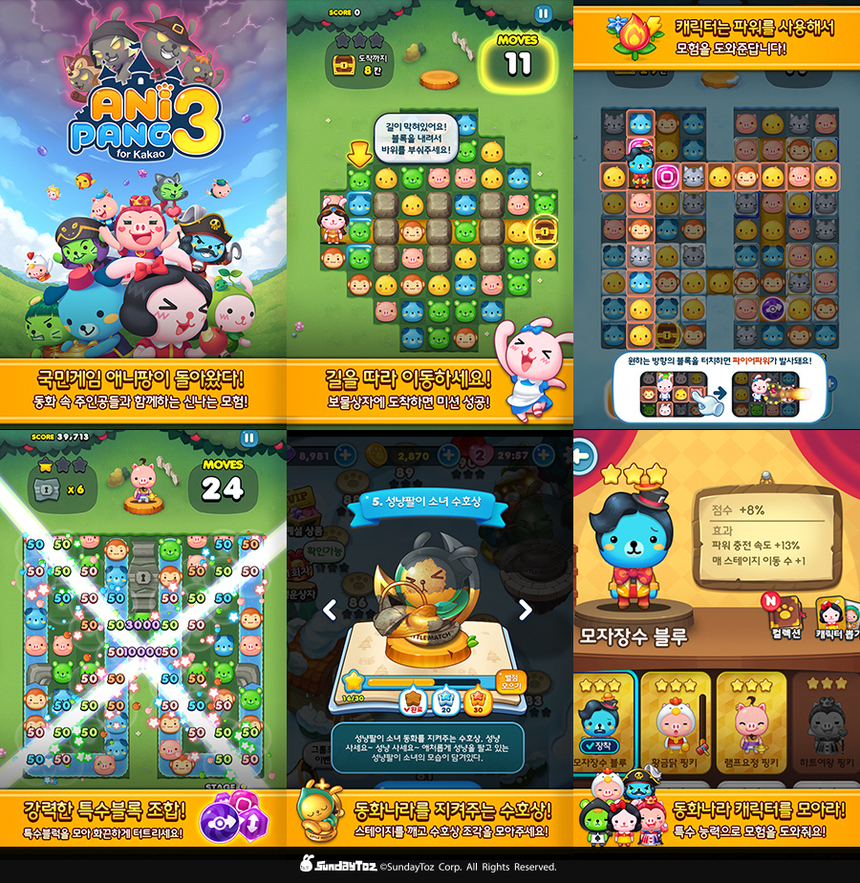 지난달 27일에 출시된 애니팡3는 나흘 만인 9월 30일에 이미 다운로드 건수 90만건을 훌쩍 넘어섰다. 출시 후 2일 차에 애플 앱스토어와 원스토어의 인기 게임 장르 1위에 오른데 이어 30일에는 구글 플레이스토어 인기 게임 부문에서도 1위를 차지했다. 애니팡3는 캐릭터를 전면에 내세운 스토리 전개와 스테이지 화면 분할, 다양한 특수 기능의 블록을 선보인 모바일 퍼즐 게임으로 2012년 출시된 애니팡의 세 번째 시리즈다.