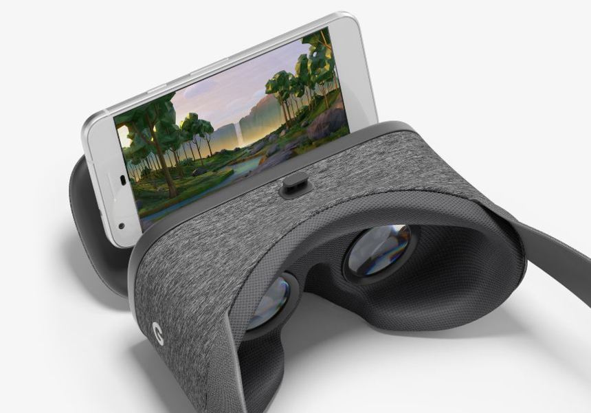 구글은 이 자리에서 데이 드림 VR 헤드셋도 함께 공개했다. 픽셀폰과 연결해 사용 가능하고 각종 게임을 즐길 수 있다.