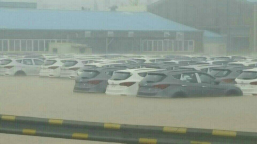 현대차 울산 2공장은 아반떼와 싼타페, i40 등을 생산하고 있다. 이날 야적장에 정차돼 있던 일부 신차들도 침수피해를 입은 것으로 밝혀졌다.