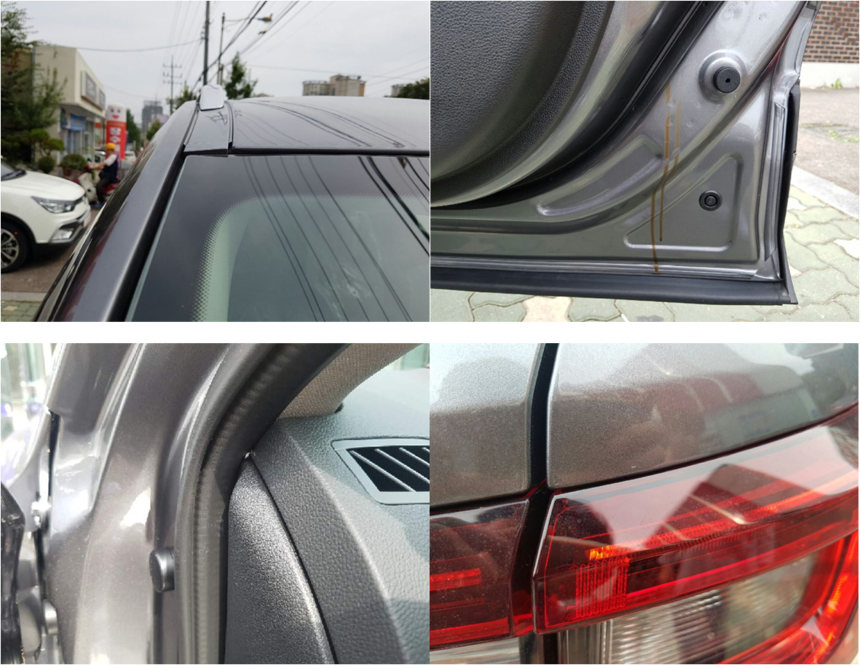 이후 김 씨는 “나사를 풀어 단차불량을 개선해야 할 경우 따질 것 없이 인수거부 하겠다”고 밝힌 뒤 신차검수를 받았다. 그즈음 탁송 기사로부터 차량을 받을 땐 보이지 않았던 결함들이 차츰 눈에 들어왔다. 신차검수 결과는 참담했다. 운전석 휀다 단차불량, 차량 전면 유리와 프레임 간 단차불량, 운전석 내부 마감 불량, 후미등 도장 훼손, 조수석 누유 흔적, 차체 지붕 위 루프랙 조립 불량 등 외장에서만 총 6개의 결함이 발견됐다.