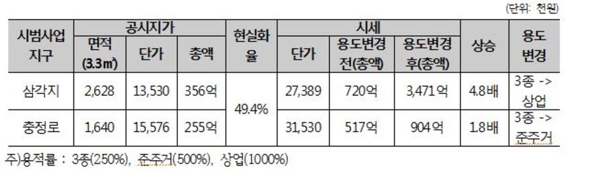 또한 청년주택 사업지 인근 투기세력 유입 가능성도 제기됐다. 삼각지와 충정로는 3종 주거지(용적률 250%)다. 앞서 서울시는 청년층 임대주택 수용인원 확대를 위해 해당 부지를 각각 상업(용적률 1000%), 준주거(용적률 500%)용지로 전환할 계획을 밝혔다. 경실련과 정동영 의원실 측은 이를 ‘특혜 개발’이라 규정하고, 계획 발표 이후 주변 땅값이 상승하고 있다고 지적했다.