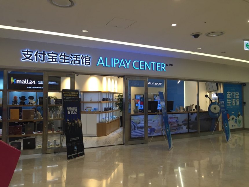 알리페이 임시 체험관에선 알리페이 앱을 내려 받은 사용자에게 갖가지 무료 서비스를 제공하고 있었다. 2015년 7월 코엑스는 알리페이와 협약을 체결하고 매장에서 알리페이 결제를 가능케 했다.