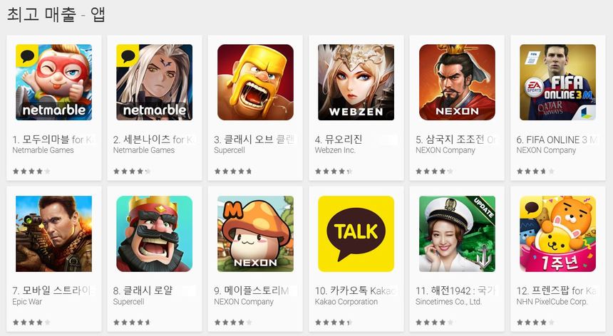 이로써 넥슨은 양대 마켓에서 기존 ‘피파온라인3M’을 포함해 최고 매출 Top10 가운데 3개의 게임을 보유한 업체로 급부상했다. 기존 모바일게임 시장 1위 업체였던 넷마블은 현재 ‘모두의마블’과 ‘세븐나이츠’ 2종의 게임이 최고 매출 Top10 안에 자리하고 있다.