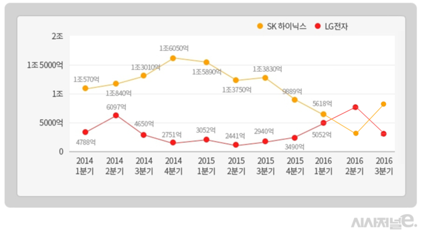 낸드플래시 시장에서도 절대적 우위를 지키는 삼성전자와 달리 D램에만 실적을 전적으로 의존한다. 이 때문에 SK하이닉스가 장기간 불황 터널을 벗어나지 못할 것이란 분석도 있었으나 단 한 분기 만에 LG전자를 제치고 다시 치고 올라오는 저력을 보여줬다.