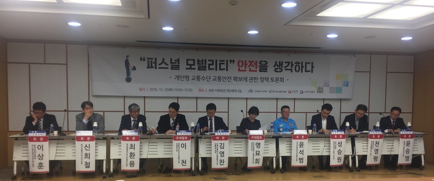 25일 윤재옥 새누리당 의원은 국회 의원회관에서 ‘퍼스널 모빌리티, 안전을 생각하다’란 정책토론회를 개최했다. 윤 의원은 개회사에서 “법과 제도가 기술을 따라가지 못해 PM 이용자들은 법의 사각지대에 있다”라며 “PM 교통안전을 어떤 방향으로 확보할 지 의견을 듣고자 토론회를 개최했다”고 밝혔다.