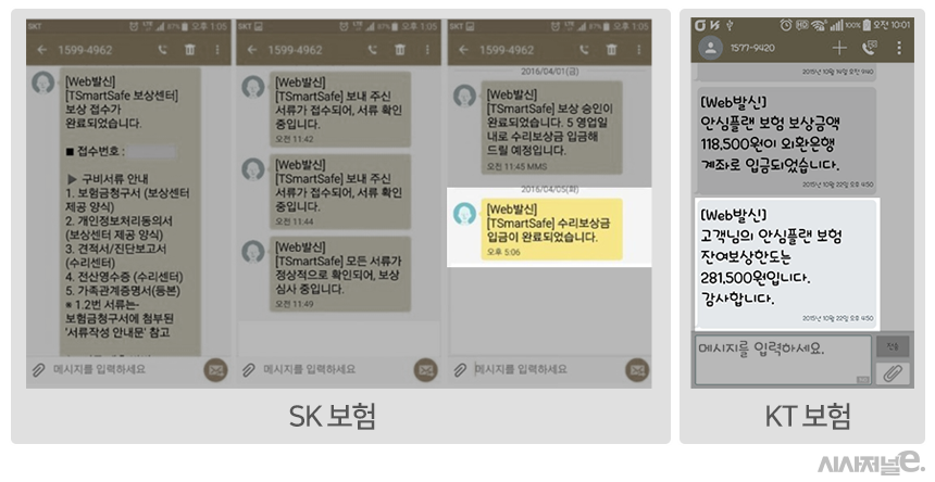 이동통신 3사 중 KT와 LG유플러스는 보험에 가입한 뒤 수리 서비스를 이용한 고객에게 잔여 보상액을 문자로 고지하고 있었다. SK텔레콤 T스마트 세이프 관계자는 “SK텔레콤은 보상 잔액 문자 서비스를 제공하지 않는다”며 “보상한도를 고지 받지 못한 고객들이 항의하기 위해 전화하기도 한다”고 설명했다.