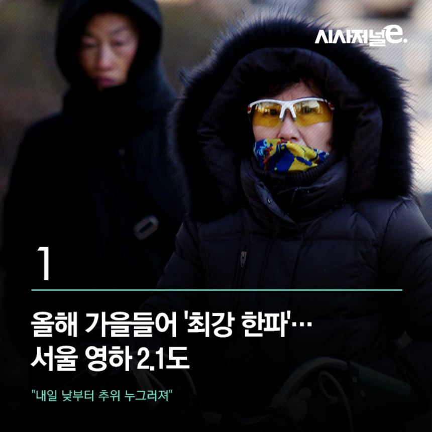 올해 가을들어 '최강 한파'…서울 영하 2.1도 저작권자 © 시사저널e 무단전재 및 재배포 금지 김재일 기자 kojell@sisajournal-e.com 페이스북 인스타그램 유튜브 이메일(으)로 기사보내기 다른 공유 찾기 기사스크랩하기