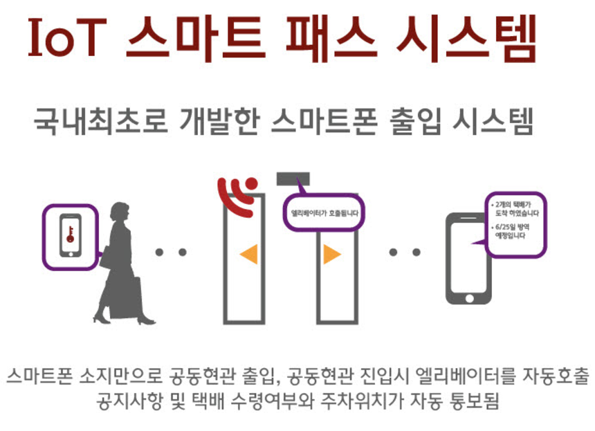 현대건설은 이달 초 자체적으로 스마트 패스 시스템을 개발했다. 블루투스(Bluetooth) 기술에 기반한 이 스마트폰 자동출입 시스템은 해당 앱을 설치한 휴대폰 소지자가 공동현관이나 개별가구 현관에 3m 이내에 접근하면 문이 열리거나 잠금장치가 해제되는 방식이다. 또 공동현관에 진입하면 엘리베이터가 자동으로 호출되고, 택배 수령여부와 주차위치가 문자로 통보된다. 회사 측은 '힐스테이트 동탄', '힐스테이트 태전 2차', '디에이치 아너힐즈(개포주공3단지 재건축)' 등에 새 출입 시스템을 적용할 예정이다. 또 현재 공사중인 단지들도 입주민들과 협의해 기술적 검토를 거친 후 확대 적용한다는 방침이다.