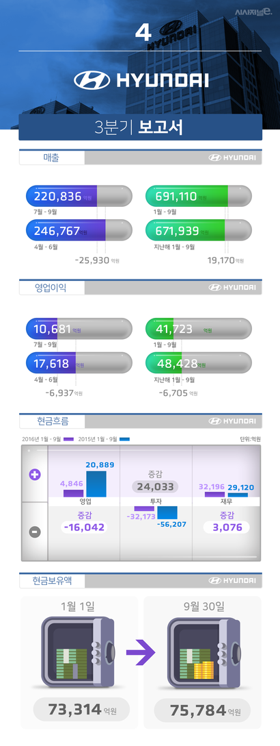 현대차 9월말 기준 현금보유액은 올해초 7조3314억원 대비 2400억원가량