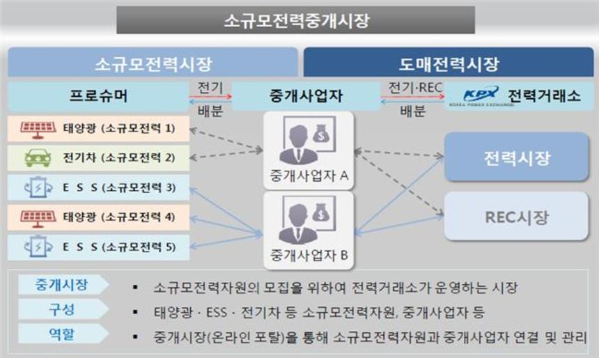 소규모전력중개시장은 전력거래소, 발전사업자, 중개사업자 3자에게 모두에게 혜택을 줄 것으로 전망된다. 중개사업자는 전력거래소에 다음날 시간대별 신재생에너지 발전량 예측치를 제공한다. 전력거래소는 이 수치를 바탕으로 안정적인 전력 수급 계획을 세울 수 있다. 발전사업자는 번잡한 절차와 비싼 관리 비용을 해결하고 전문적인 관리도 받을 수 있다.