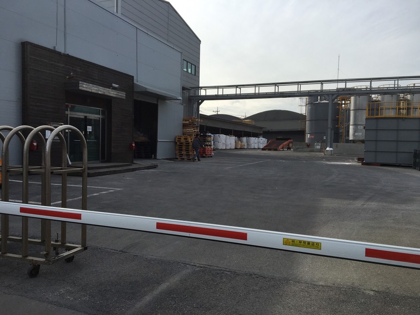 공장 차단막 앞을 지키는 경비에게 다가갔다. “여쭤볼게 있다”는 외지인 질문에 경비는 시선을 떨궜다. 뒤도 돌아보지 않고 “난 아무것도 모른다”며 사무실로 들어가 얇은 유리창을 ‘쾅’하고 닫았다. 반응이 놀랍지 않았다. 공장을 운영하는 회사는 '비선실세' 최순실씨 딸 정유라씨의 초등학교 동창 가족이 운영하는 무기화학 제조업체 케이디(KD)코퍼레이션이다.