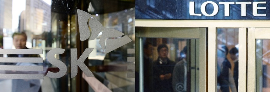 SK와 롯데는 지난해 11월 서울시내 면세점 특허권 재승인 심사에서 기존에 보유하던 워커힐 면세점과 롯데월드타워 면세점 특허권을 잃었다. 서울시내 면세점 특허권은 '황금알을 낳는 거위'로 통한다. 기업들로선 특허권 획득에 사활을 거는 구조다. 지난해 11월 특허권 심사에선 이들 두 그룹 외에도 삼성·한화·두산 등 굵직굵직한 그룹들이 참여한 바 있다.