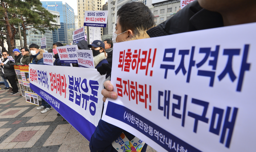 협회는 7일 명동 신세계면세점 앞에서 신세계면세점이 중국 유학생 및 국내 거주 외국인 등 무자격가이드를 고용하고 이들이 면세품을 대량으로 구매하는 것을 묵인해 매출향상을 꾀했다고 주장했다.