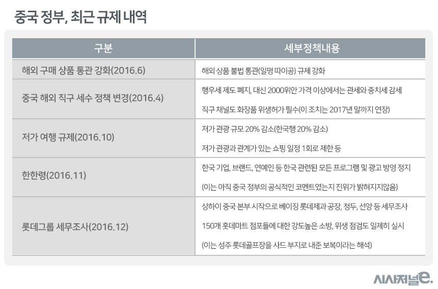 지난해 6월 중국 당국은 해외구매 상품 통관을 강화했다. 이어 올 4월에는 해외 직구 세수 정책을 변경했다. 직구 채널이라고 하더라도 화장품의 경우 필수적으로 위생 허가를 받도록 조치했다. 여기에 비공식적이기는 하지만 저가여행 규제, 한한령이 이어지면서 관계는 급속도로 굳어가고 있다.