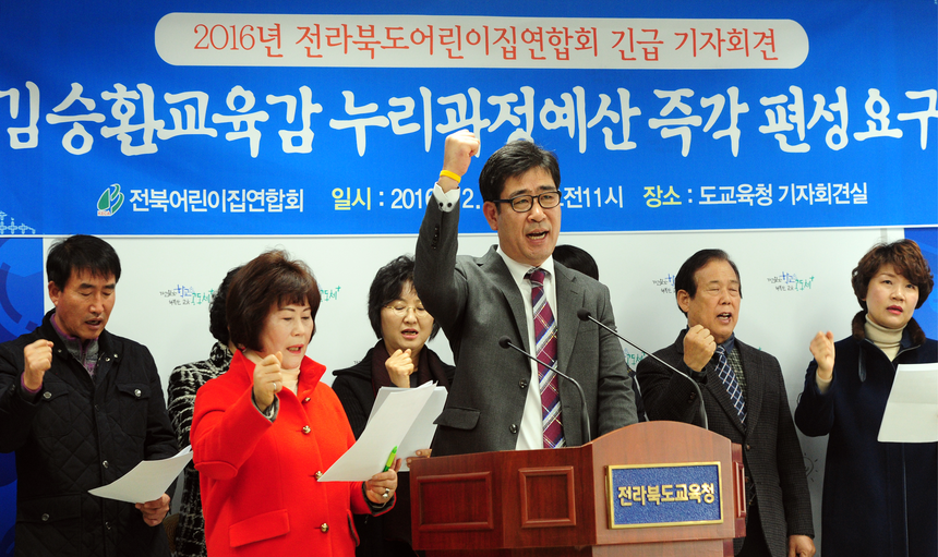 전북교육청은 지난주 도의회가 올해분 어린이집 누리과정 예산 762억원을 편성하자 교육청이 어린이집 누리과정 비용을 지불할 의무가 없다며‘ 집행불가’ 의사를 밝혔다. 누리과정 예산안이 의회를 통과해 최종 확정됐지만 일선 교육청이 이를 거부하는 초유의 사태가 발생한 것이다.