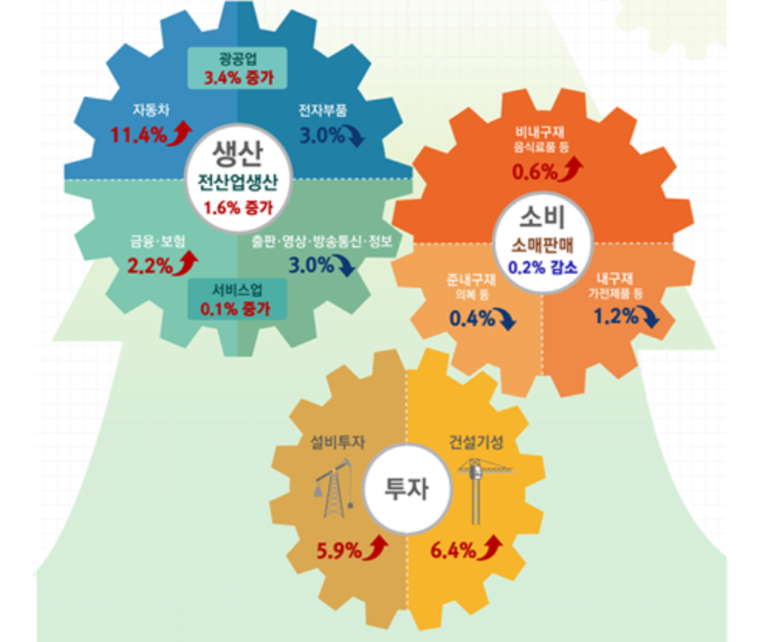 올해 수출이 6년만에 5000억 달러 아래로 떨어질 것으로 전망되는 등 한국경제가 악화일로에 있었지만, 산업생산이 증가하면서 경기가 다시 회복될 조짐을 보이고 있다.