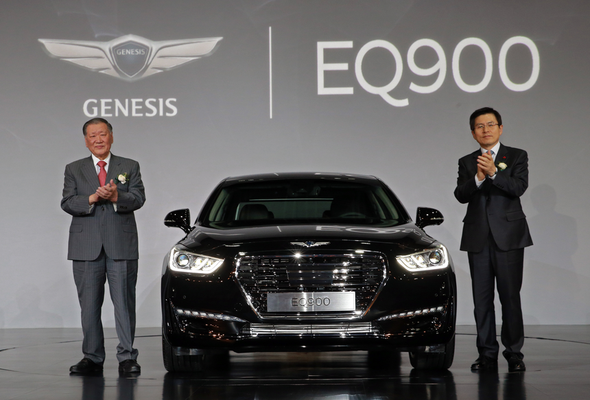 정 회장은 지난해 신년사 마지막부분에 국가에 대한 자부심과 사명감을 강조했다. 업계에서는 신년사 발표 한 달 전인 2015년 12월 9일 진행됐던 제네시스 대형 세단 EQ900 출시행사에 황교안 국무총리(現 대통령 권한대행)가 참석한 게 정 회장의 ‘애국 신년사’ 배경이 된 게 아니냐는 추측이 나왔다.