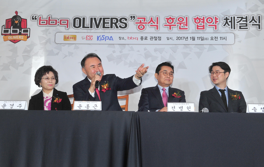 치킨 프렌차이즈 BBQ와 한국e스포츠협회는 지난 11일 bbq 종로 본점에서 ‘bbq 올리버스’ 공식 후원 체결식을 진행했다. bbq 올리버스는 오는 17일 개막하는‘2017 리그오브레전드(LOL) 챔피언스 코리아 스프링 시즌부터 새로운 팀명, 로고, 유니폼과 함께 경기에 참가할 계획이다.