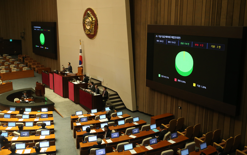 국회는 20일 가습기살균제의 사용으로 인해 생명 또는 건강상 피해를 입은 피해자와 그 유족을 신속하고 공정하게 구제하는 것을 뼈대로 하는 가습기 특별법을 의결했다. 재석의원 156명 가운데 154명이 찬성했다. 2명은 기권했다.