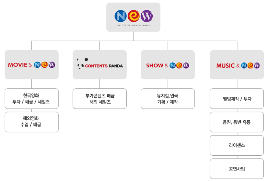 2008년 NEW를 설립한 영화계 미다스의 손 김우택 대표는 다방면으로 NEW의 사업을 늘리며 몸집불리기를 진두지휘하고 있다. 2008년 설립돼 아직 채 10년도 되지 않은 신생기업 NEW는 산하에 영화 뿐 아니라 음악, 공연, 부가판권 등 다양한 사업부문을 갖추고 있다.